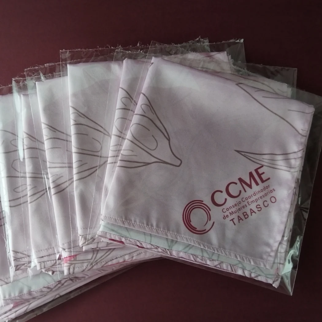 Las mascadas pueden ser de diferentes medidas y telas sintéticas duraderas.