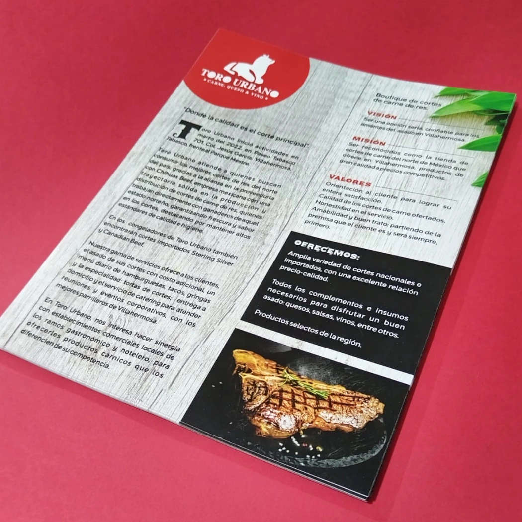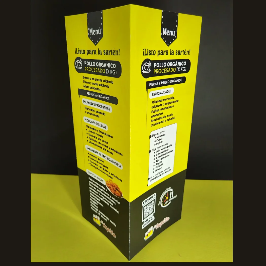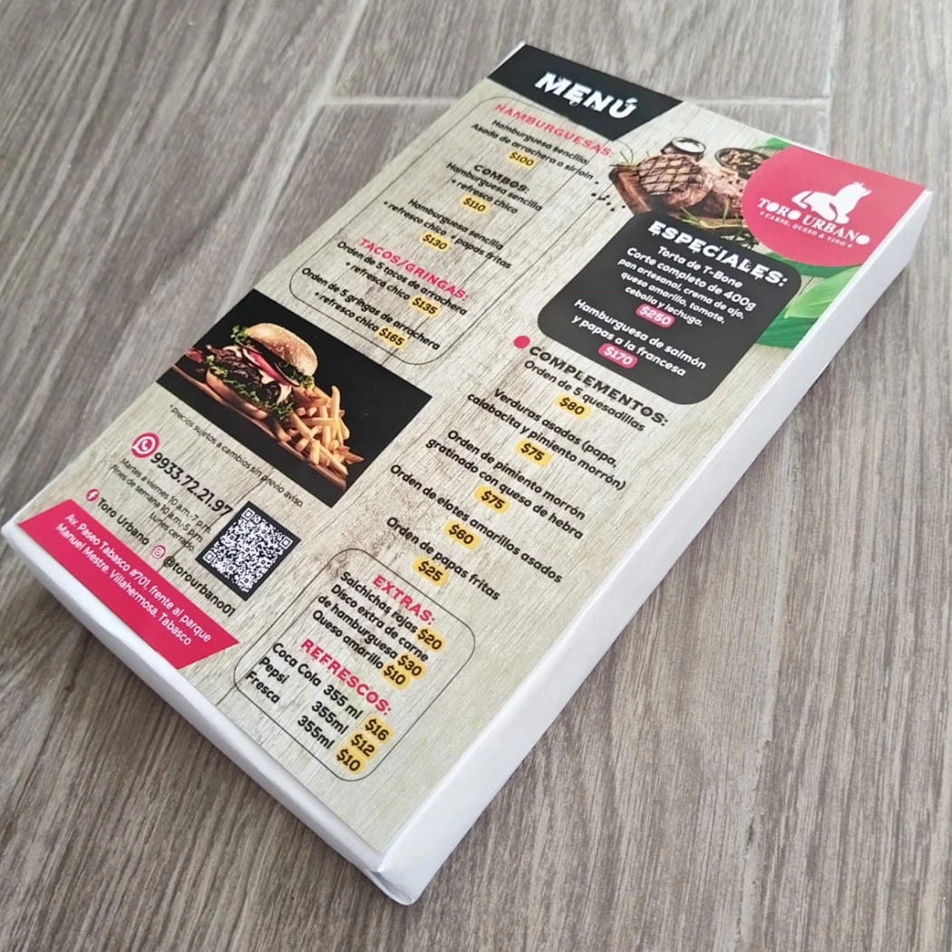 Menús, materiales a escoger laminado y extra rígido, diversos acabados.